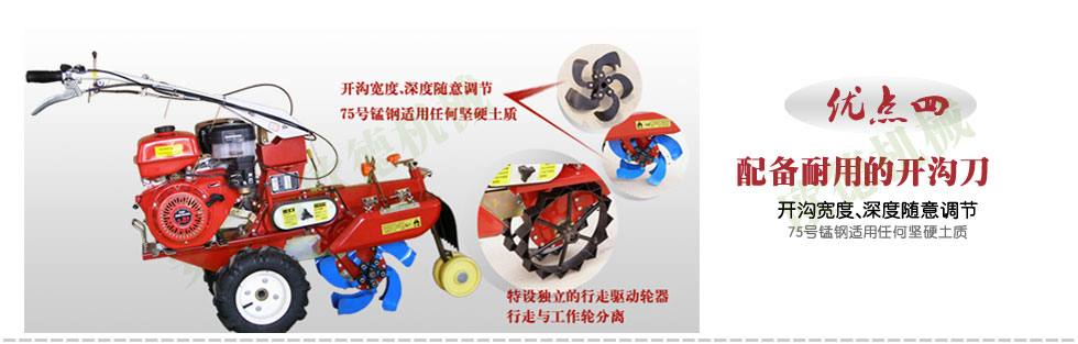 主要產(chǎn)品: 開溝培土機/ 田園管理機/ 微耕機/ 起壟機/ 旋耕機/ 大型開溝機/ 葡萄埋藤機/ 大蔥收獲機/ 挖坑機/ 彌霧機/ 大棚卷簾機/